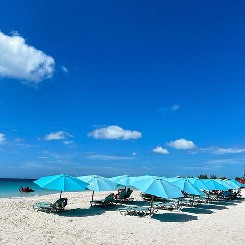 SAVVY On The Bay offers sun lounger rental with a shares beach umbrella for US$10 per person.